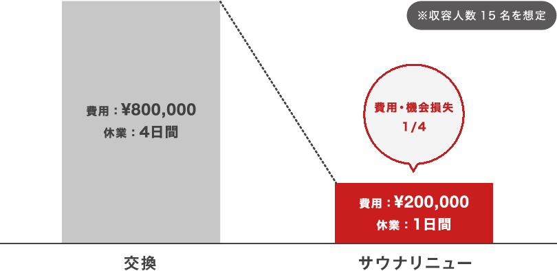 サウナリニューなら、費用も機会損失も1/4
